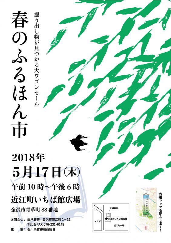 石川県下の古本屋が大集合!掘り出し物が見つかる大ワゴンセールです。 古書マップも配布します! 日時:2018年5月17日(木) 10:00-18:00 会場:近…