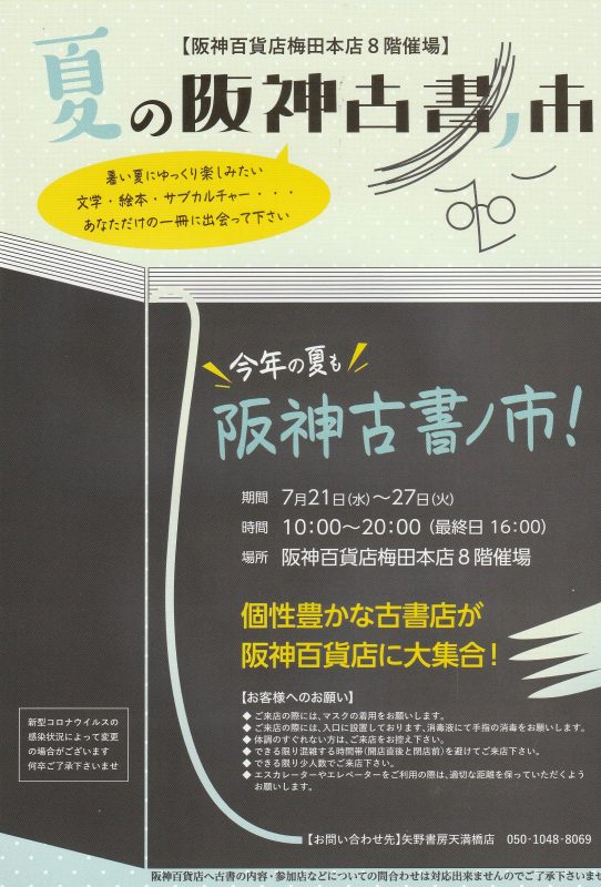 阪神百貨店・夏の阪神古書ノ市 日時:2021年7月21日(水)〜 27日(火)<最終日は午後4時まで> 会場:阪神百貨店梅田本店 8階催場 暑い夏にゆっくり楽し…