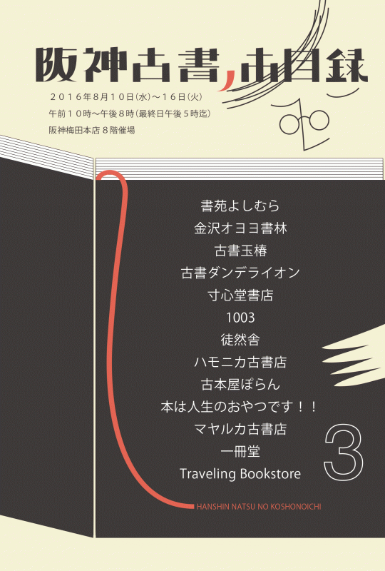 毎年恒例古書即売会! 今年の夏も個性派古書店が勢揃い! 日時:2016年8月10(水)~16(火) 場所:大阪阪神百貨店梅田本店 参加古書店: 書苑よしむら 古…