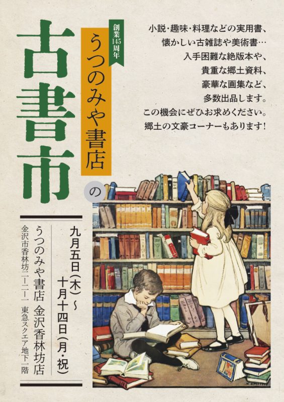 出店します:2024 夏 うつのみや書店の古書市 @ 香林坊東急スクエア